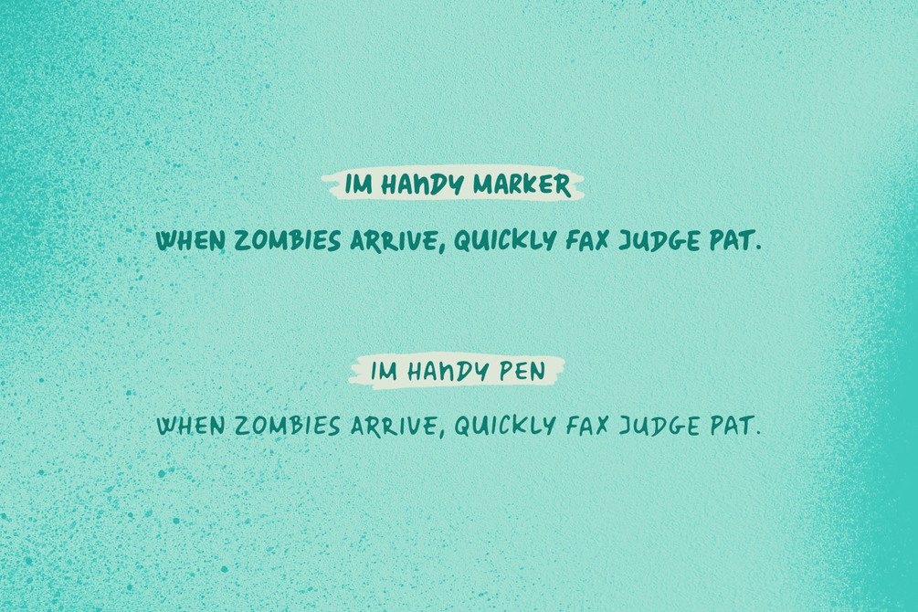 IM Handy is a handwritten font marker & pen font. 2 styles with over 200 unique characters in them so you can use stylistic alternates for all letters to give your design a more handwritten look.